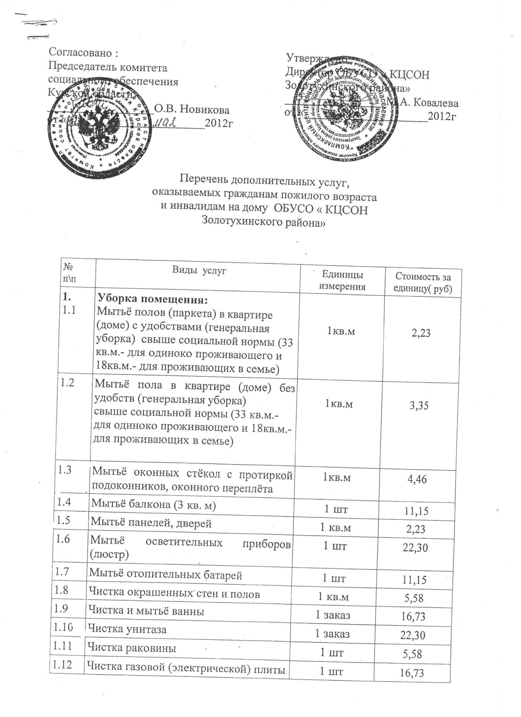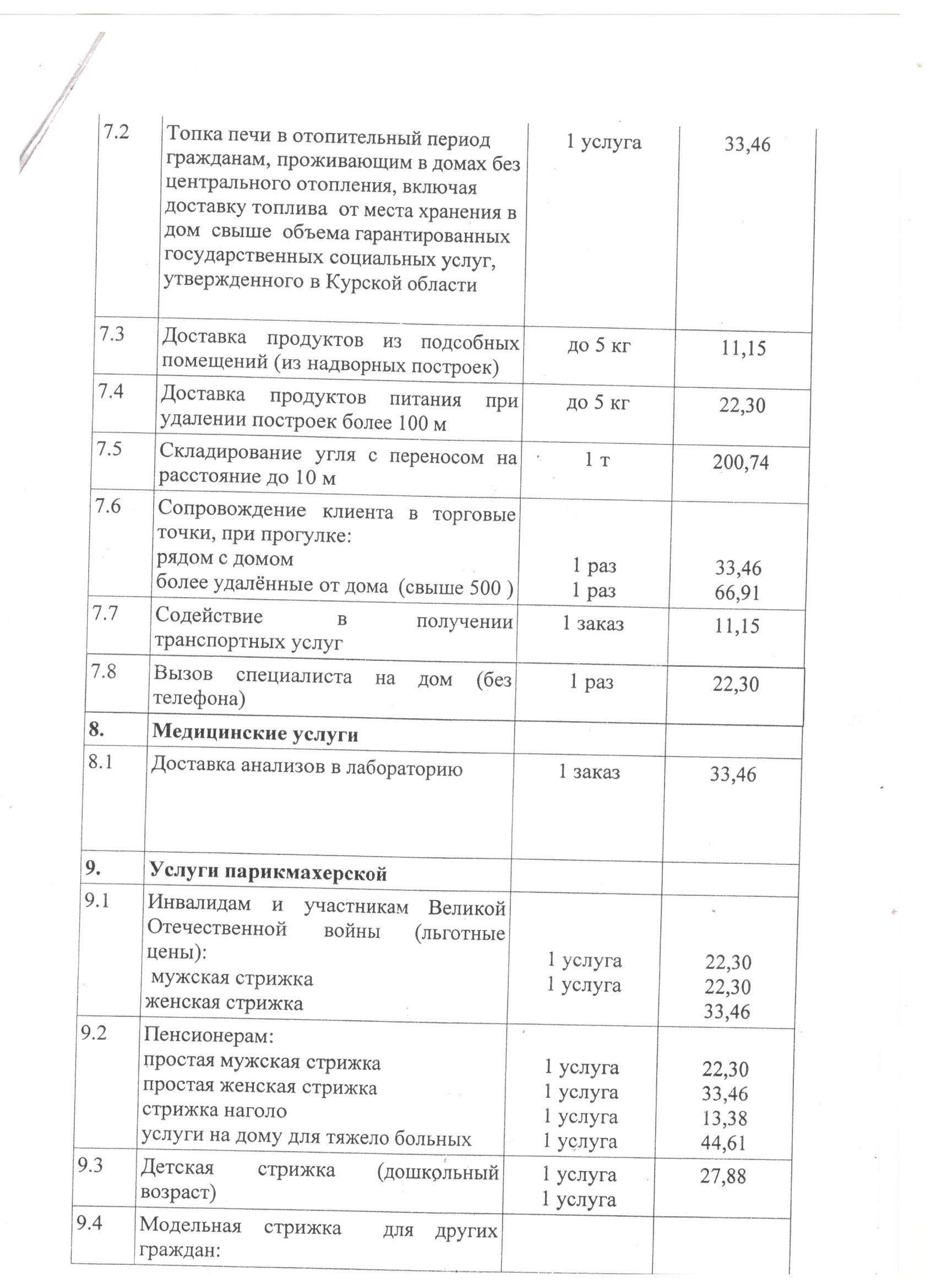 Тарифы на социальные услуги, предоставляемые в форме социального обслуживания на домуПриказ об утверждении тарифов на социальные услуги, предоставляемые поставщиками социальных услуг в Курской области, на 2024 год. (Посмотреть)