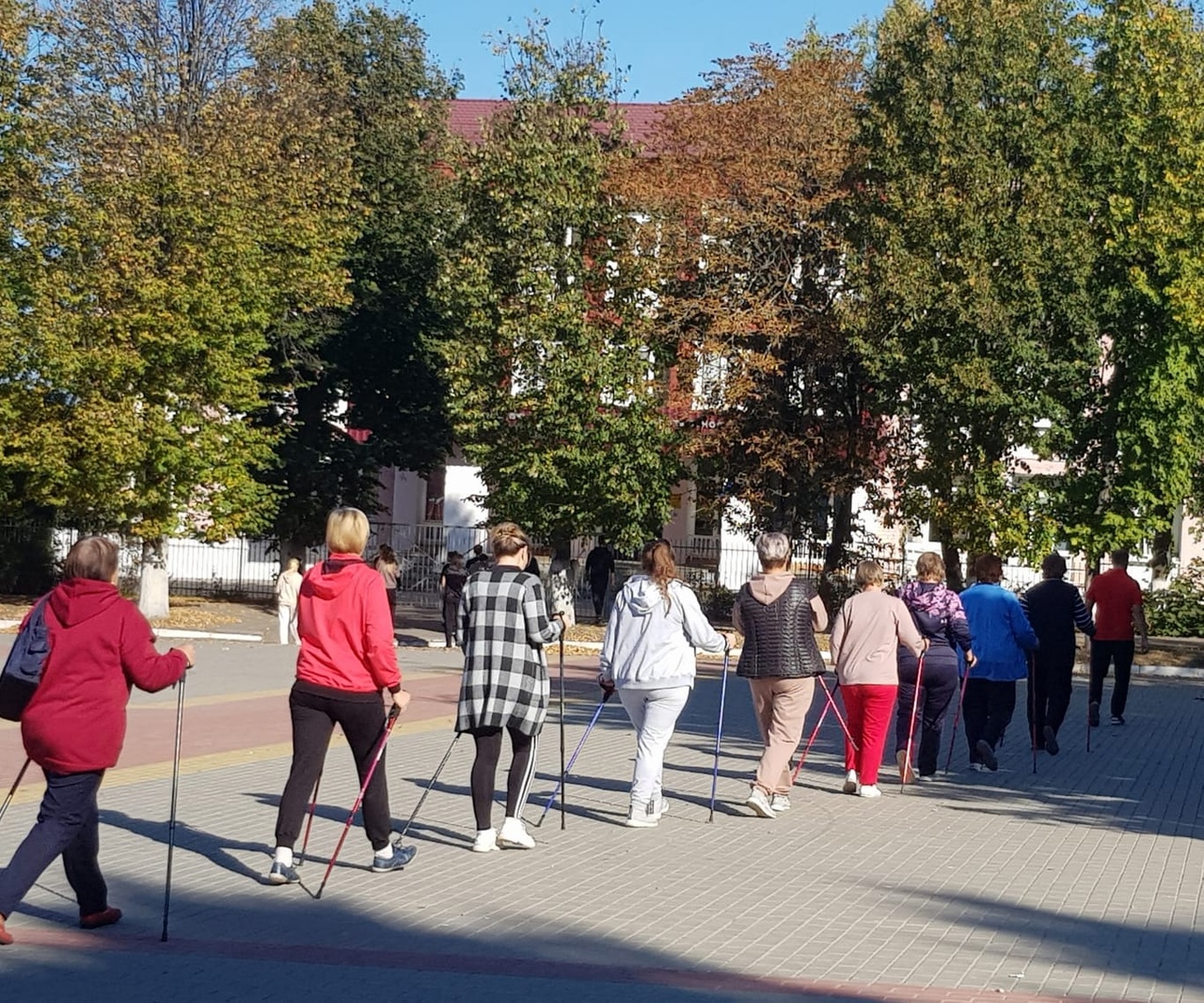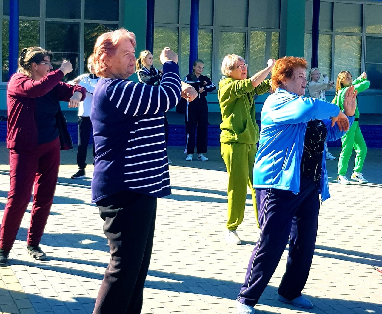 | Декаду пожилых людей открыли спортивные мероприятия: "скандинавская ходьба" и "Массовая зарядка" на центральной площади посёлка Золотухино. |
