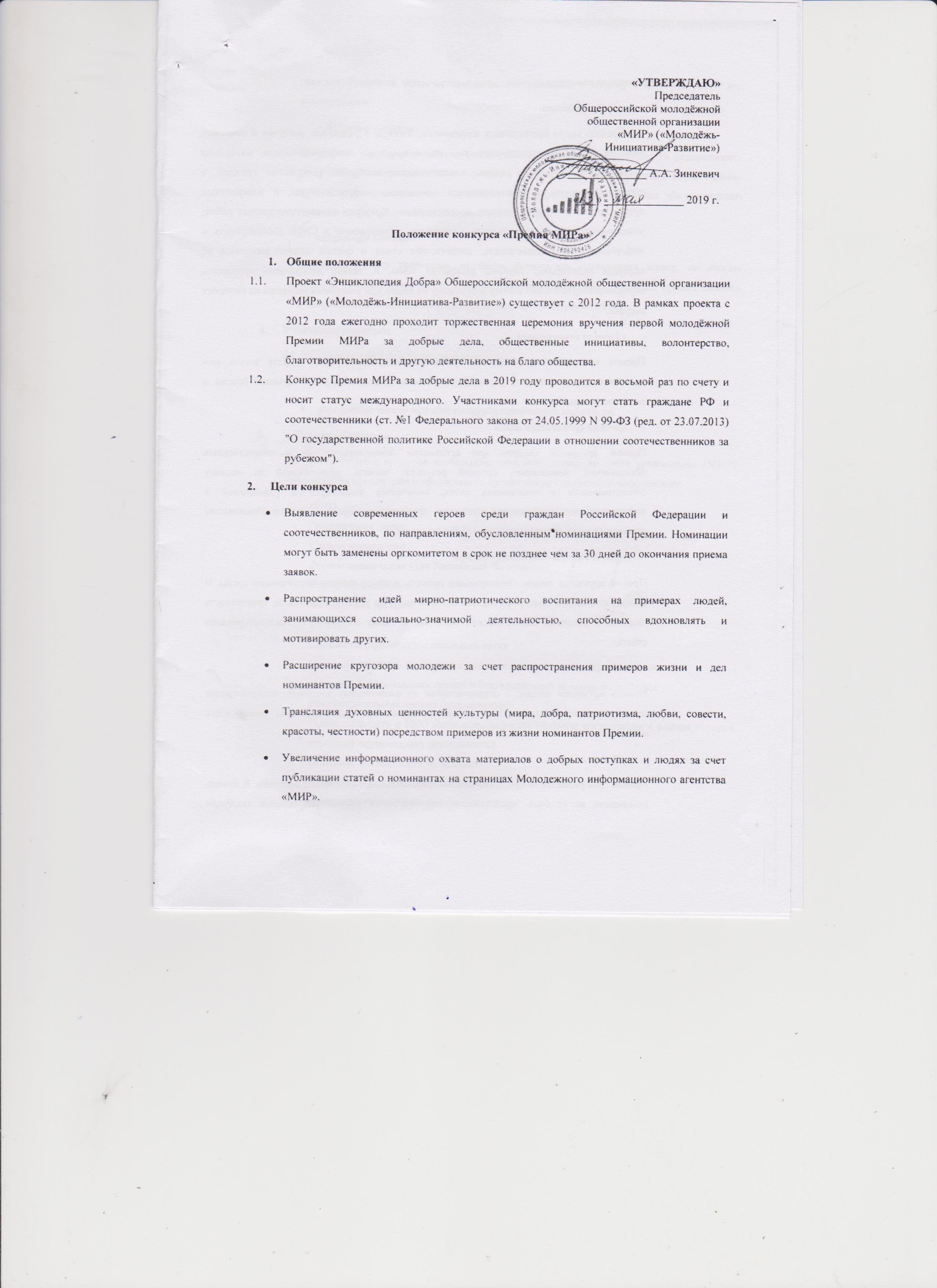 Положение конкурса "Премия Мир"
